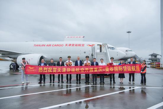 该航线每周计划运行3班,出口货物以汽车配件、笔记本电脑及配件等带电产品为主,进口货物以榴莲等生鲜农产品为主。这是天津货运航空今年以来新开通的第二条重庆到东盟的国际货运航线。今年初,天津货运航空在重庆江北国际机场投放一架B737-800全货机运力,开通了重庆往返河内国际货运航线。