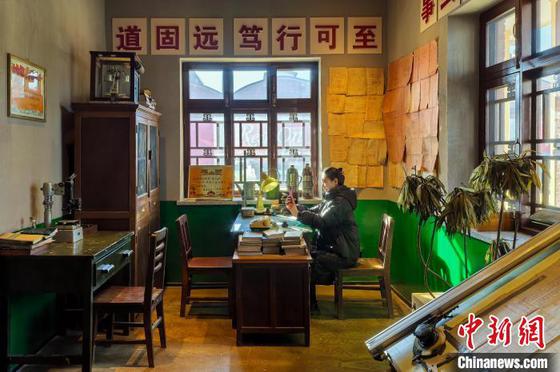1月16日,民众在原天津第一机床总厂改造而成的“津一产业公园”会客厅参观,会客厅一角还原了苏联专家办公室。记者 佟郁 摄