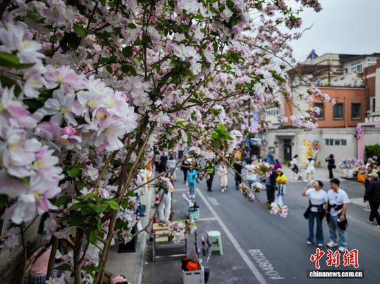 天津五大道海棠花节启幕 百年街区变身春日花海