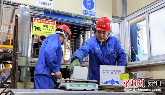 图为卤水综合利用二厂四溴双酚A放销作业。(天津长芦汉沽盐场有限责任公司供图)