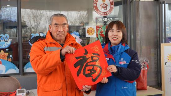 除了物质慰问,本次活动更注重身心关怀的融合。现场同步开设了免费血压测量点和普法咨询台,专业人员面对面为劳动者讲解劳动权益保障相关法律知识,提升其自我保护意识。此外,工作人员现场挥毫书写“福”字,将健康关怀、法治守护与新春祝福融为一体,让这份冬日的温暖更具厚度。